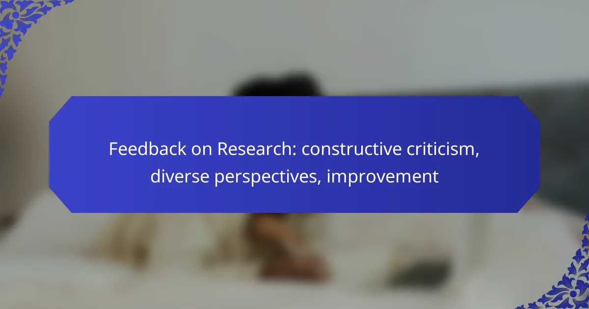 Feedback on research is essential for enhancing its quality and credibility, as constructive criticism helps identify both strengths and weaknesses. By incorporating diverse perspectives through structured peer reviews, focus groups, and collaborative workshops, researchers can refine their work and ensure its relevance. Actively seeking and integrating this feedback fosters a culture of continuous improvement, ultimately leading to more robust findings.